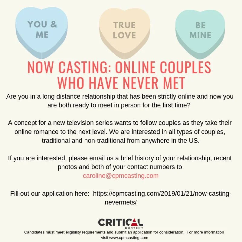 Nationwide, Other Cities, reality Digital Influence 2/21/19 Nationwide, Other Cities, reality Digital Influence 2/21/19 Casting Nationwide and International -Couples who have been dating online, but have never met Read More